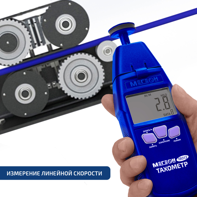 Помимо измерения частоты вращения, прибор способен определять линейное перемещение объектов в диапазоне от 0,3 до 700 метров в минуту. Он поддерживает четыре единицы измерения скорости перемещения — метр/мин, дюйм/мин, фут/мин и ярд/мин, что расширяет его функциональные возможности и делает его универсальным инструментом для различных применений.